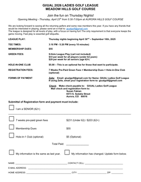 Ladies Golf league april to September