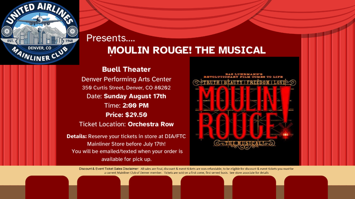 To be eligible for discount & event tickets you must be a current Mainliner Club of Denver member.